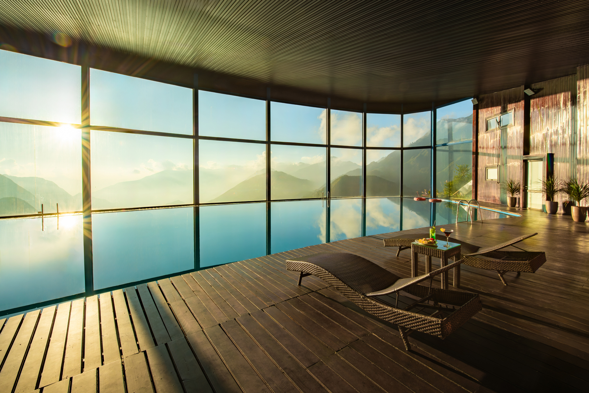 Từ đây, bạn có thể phóng tầm mắt ra dãy Hoàng Liên Sơn hùng vĩ, mây trời lững lờ ngay trước mặt – một trải nghiệm vừa thư giãn, vừa chạm gần thiên nhiên. Tại bể còn phục vụ bánh ngọt và đồ uống, có sẵn dịch vụ cho thuê đồ bơi – để bạn tận hưởng trọn vẹn cảm giác tự do, an yên giữa tầng mây và đỉnh núi.