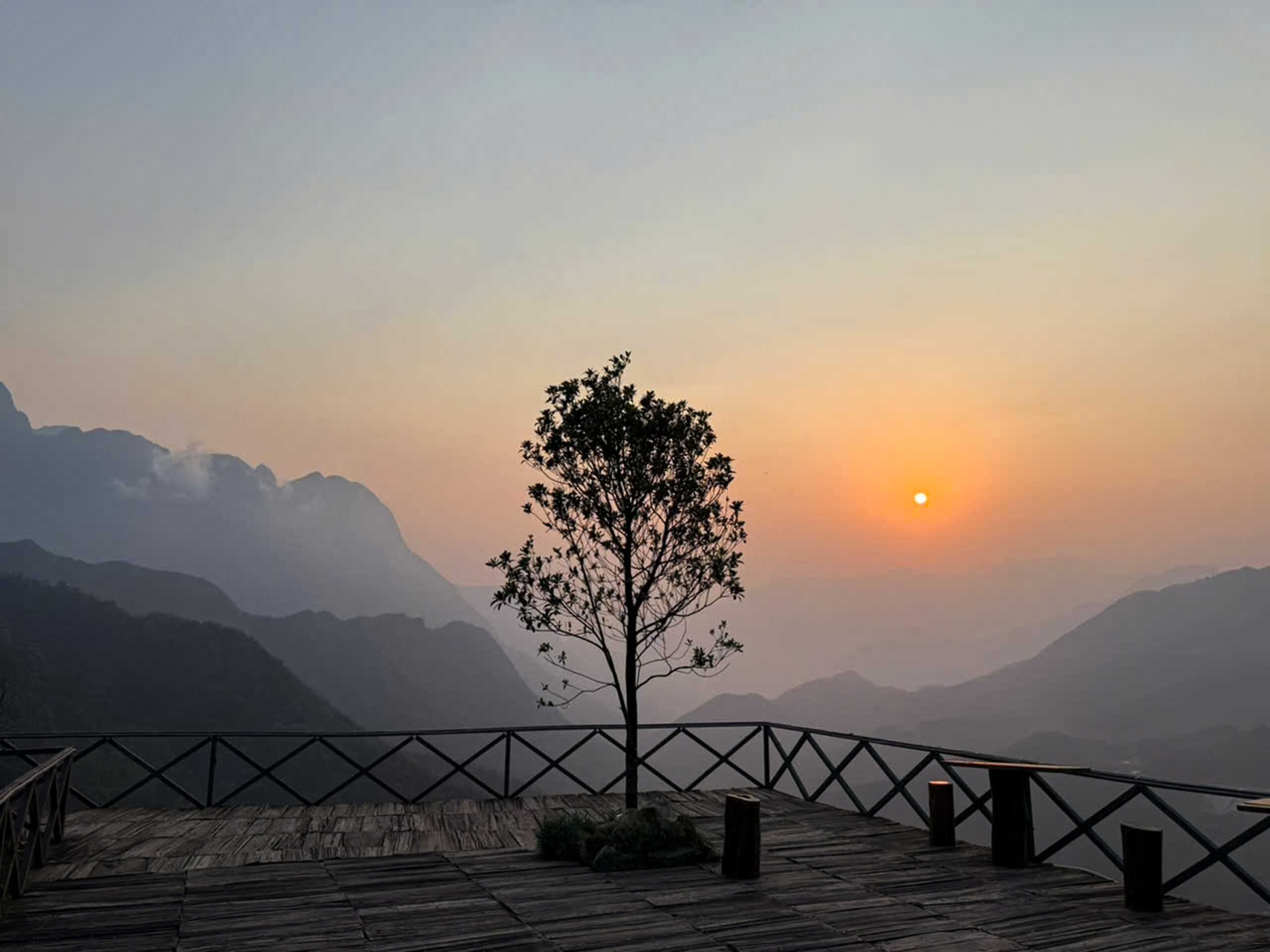 Trước mặt là cây, sau lưng là dãy Hoàng Liên Sơn hùng vĩ. Gió rì rào như tiếng vọng của thời gian. Còn cây – vẫn lặng yên, vững chãi giữa sương gió, làm tri âm cho mây ngàn, chứng nhân cho tháng năm.