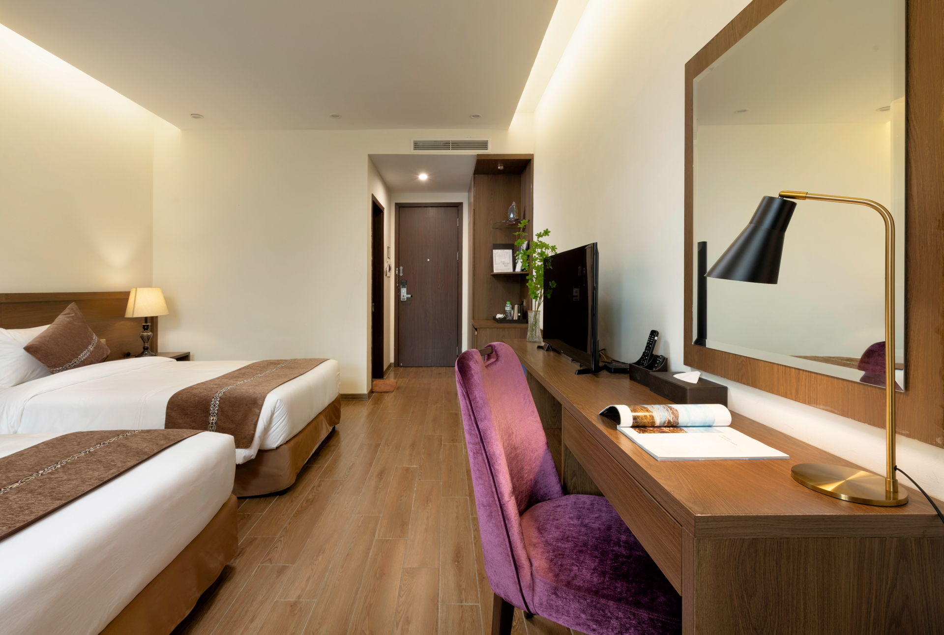 Phòng Superior được thiết kế xinh xắn và ấm cúng với đầy đủ những trang thiết bị tiện nghi cần thiết phục vụ cho chuyến nghỉ dưỡng của bạn cùng người thân. Bạn có thể lựa chọn nghỉ tại phòng 1 giường đôi cỡ lớn hoặc 2 giường đơn tùy vào nhu cầu của mình.