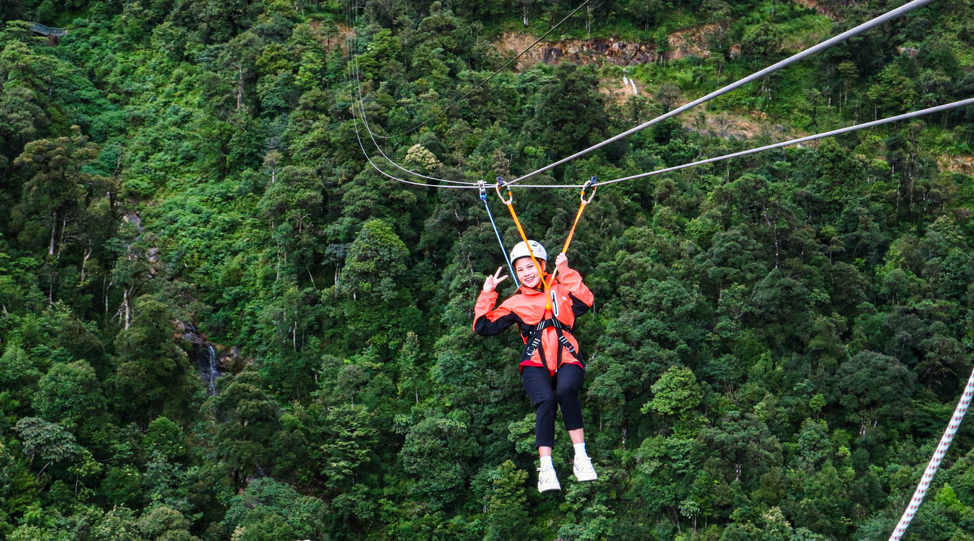 Bay vút giữa không trung với đường zipline dài, kết hợp cú nhảy tự do đầy phấn khích dành cho người ưa mạo hiểm!